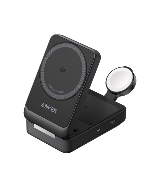 マグネット式ワイヤレス充電に対応の3-in-1充電器。Qi2対応のiPhone (※) 等に、従来のAnker MagGoシリーズの2倍の最大15W出力でワイヤレス充電が可能です。