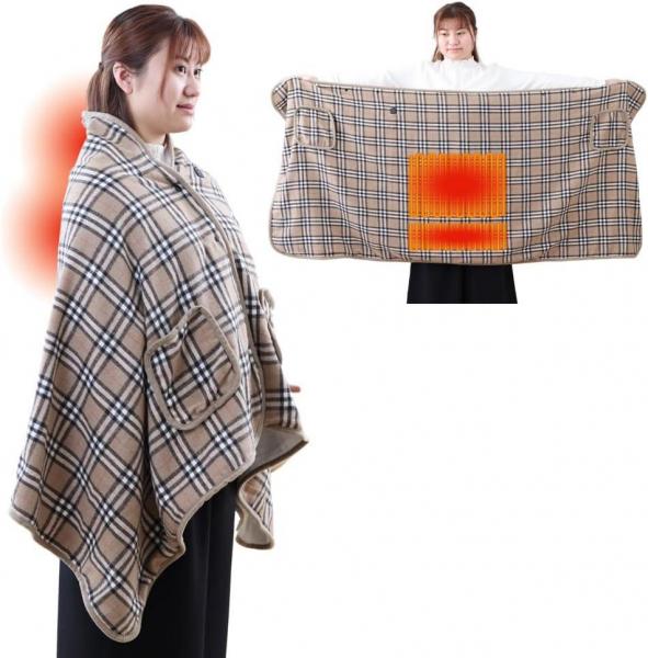 SunRuck ヒートブランケット 電熱ブランケット 着るだんぼくん SR-EW014-KHPL カーキチェック 170×75cm 動けるブランケット 歩けるブランケット ブランケット 電気毛布 ひざ掛け 【公式】