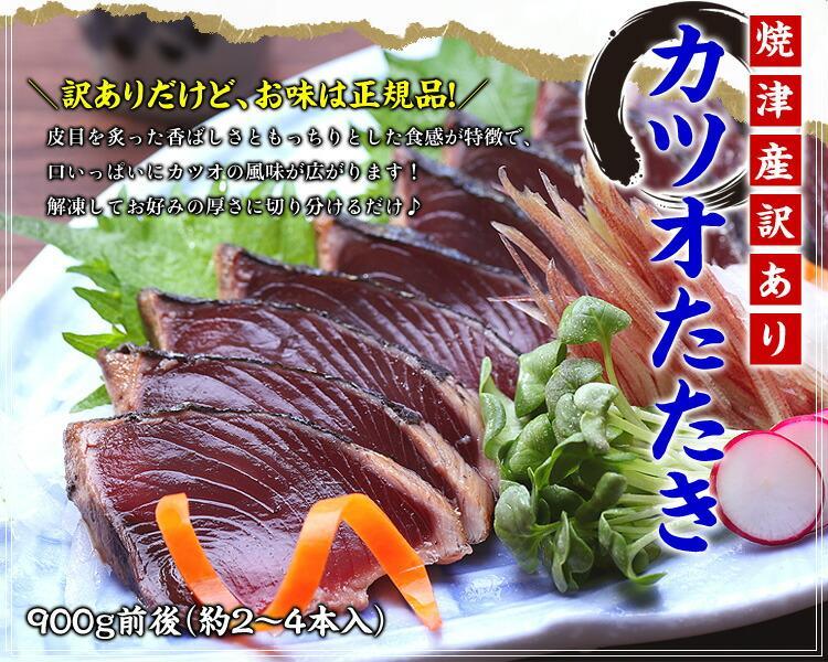 商品のポイントサイズ不揃いの訳あり品だけど、お味は正規品!静岡県焼津港カツオたたきのお得な訳あり品が入荷しました♪皮目を炙った香ばしさともっちりとした食感が特徴で、カツオの風味が口いっぱいに広がります!解凍してお好みの厚さに切り分けるだけで簡単にお召し上がりいただけます♪ショウガ、ニンニク、ミョウガなどの薬味と一緒にお召し上がりいただくのがおすすめです!商品内容カツオタタキ(生食用)カツオ ※原料原産地名静岡県 太平洋賞味期限出荷日より冷凍-18℃以下で1ヶ月以上。※冷凍カツオはご家庭用の冷凍庫で保管の場合、ゆっくりと変色します。賞味期限に関わらずなるべくお早めにお召し上がりください。お召し上がり方袋の上から流水解凍し、お好みの厚さに切ってお召し上がりください。※よく切れる刺身包丁をご使用ください。ご家庭用の包丁の場合は半解凍状態で切ると角が立って綺麗に切れます。※細心の注意を払って骨取りを行っておりますが、稀に残っている場合もありますので、ご注意下さい。