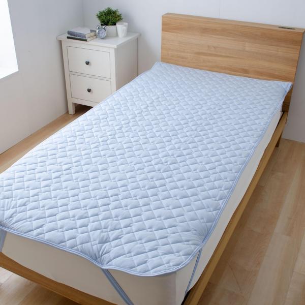 ・MITASミタスのひんやり寝具は、綿100%生地なのに心地よくひんやりと感じさせてくれるやさしい寝具です。・綿の糸に特殊な撚り方(よりかた)を施すことによって、表面の毛羽や凹凸をなくすことで熱や湿気がこもる隙間を無くしており生地自体のひんやり感を高めています。・ひんやり感を表すq-MAX値は0.3w/cm2。通常0.2以上でひんやり感があるとされる基準を上回っております。 ちょっと熱く感じても敷パッドなので寝返りを打つたびにひんやり感が戻ります。・綿100%の生地なのでひんやり素材にありがちな化学繊維のツルツル・カサカサが苦手な人におすすめ。やさしい肌ざわりとひんやり感の2つを感じられる夏におすすめの敷パッドです。・生地となかわたをきっちりホールドしてくれるキルトはダイヤキルトで、何度も洗っても中のわたがよれるにくい設計です。・4すみにはゴムバンドが付いているので、ベッドマットレスにも敷布団にも取り付け取り外しが簡単。洗濯の時にも便利な仕様です。 マットレスは20cmまでの製品に対応しています。・商品仕様 セミダブルサイズ120x205cm 生地綿100% なかわたポリエステル100% 4角にゴムバンド付き。 【商品仕様】・商品仕様 セミダブルサイズ120x205cm 生地:綿100% なかわた:ポリエステル100% 4角にゴムバンド付き。 【商品サイズ】セミダブルサイズ120x205cm  ©MITAS株式会社