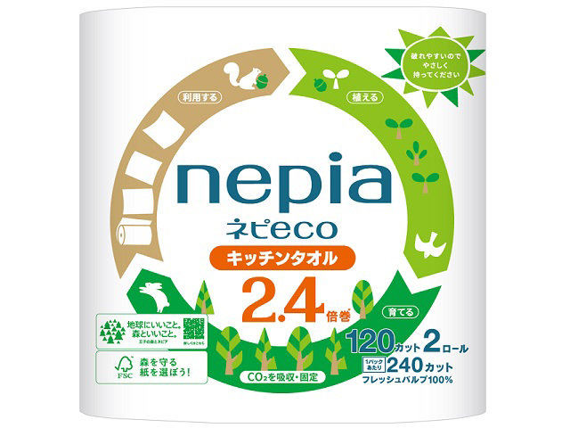 ●パッケージ包装は紙を採用●たっぷり使える大容量2.4倍巻●お料理からお掃除まで、たっぷり使える●フレッシュパルプ100%●FSC認証紙を採用●バイオマスインキ10%採用
