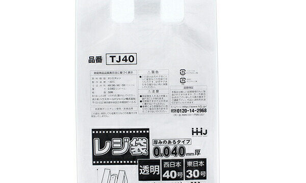 ハウスホールドジャパン レジ袋 0.040ミリ厚 透明 50枚入り TJ40