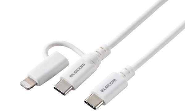 2in1 充電ケーブル ( USB-C to USB-C ケーブル + Lightning 変換プラグ ) 1m PD対応 60W 急速充電 【 タイプC / ライトニング ポート搭載 等対応 】 ホワイト MPA-CCLAD10WH