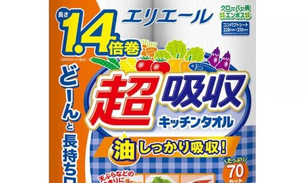 大王製紙 エリエール キッチンペーパー 超吸収 キッチンタオル 70カット×4ロール パルプ100% 1.4倍巻き